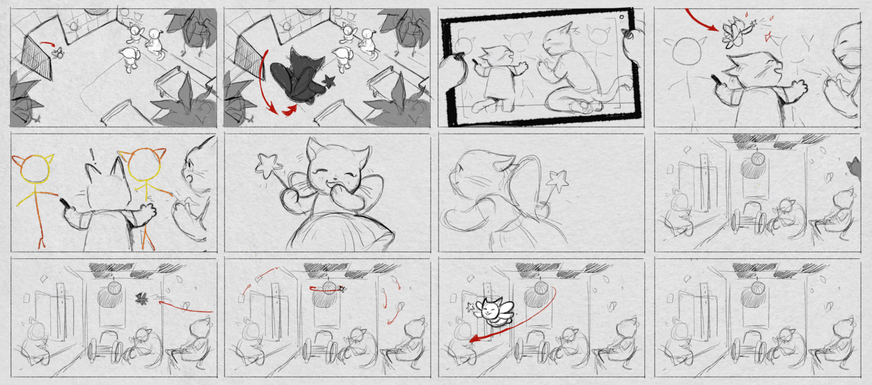 Команда студии лично посетила хоспис, чтобы глубже понять пространство, людей и атмосферу места. Визуальной основой ролика стали детские комиксы, которые мы увидели во время визита: дети рисовали персонажей в виде кошечек, которые рассказывали о том как справляются с их ситуациями простыми словами, и этот образ лёг в основу всей истории.